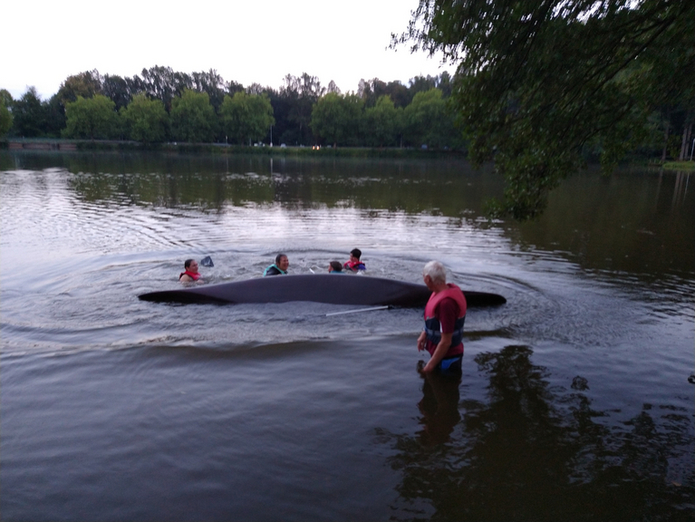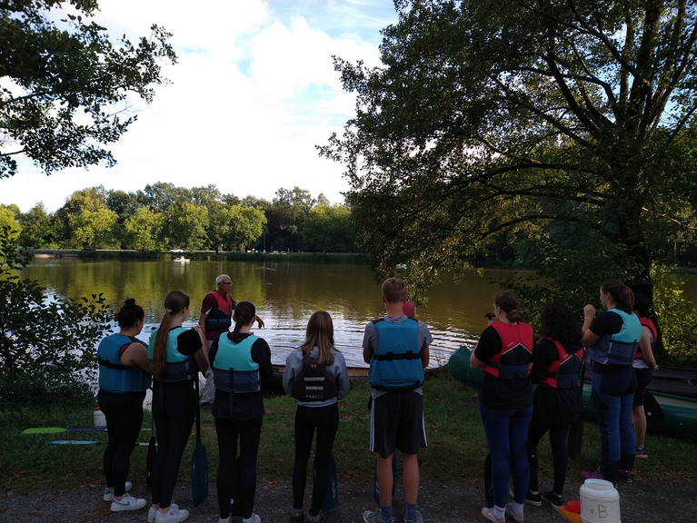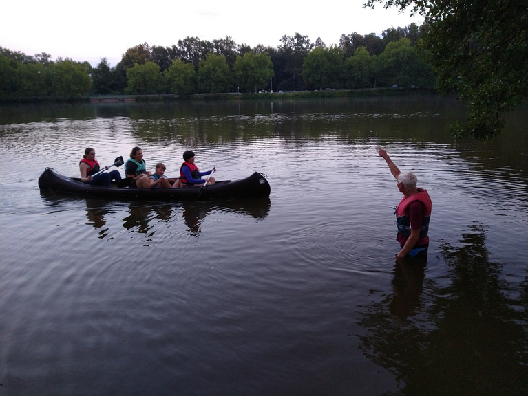 Der Auftakt des Erlebnisses fand am Freitag auf dem Jägersburger Weiher statt. In einem dreistündigen Einführungskurs wurden den Teilnehmenden die wichtigsten Sicherheitsregeln für die Fahrt auf der Blies erläutert und die Technik des Kanadier-Fahrens vermittelt. Nachdem alle mit passenden Paddeln und Schwimmwesten ausgestattet waren, lernten sie, unter der Anleitung des erfahrenen Kanufahrers Eilert, das Kanu zu steuern – eine anfängliche Herausforderung, die sie schnell meisterten. Zum Abschluss wagten sich vier mutige Teilnehmende an eine Kenterübung, um für mögliche Vorfälle auf dem Fluß gewappnet zu sein.